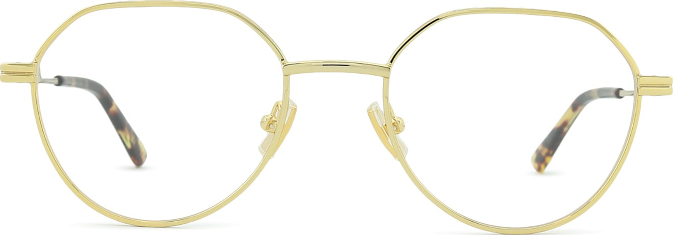 • El color dorado de la montura combina perfectamente con un tono de piel oscuro y un cabello castaño oscuro.