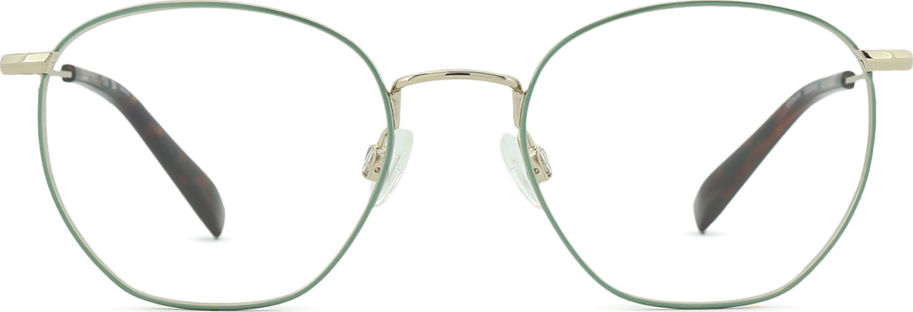• El color dorado de la montura combina perfectamente con un tono de piel oscuro y un cabello castaño oscuro.