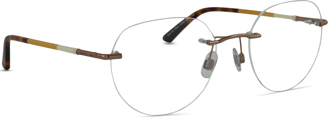 • Las gafas sin montura o con montura al aire, constan de almohadillas para la nariz, bisagras y patillas. Las gafas con este tipo de montura tienen un aspecto elegante y sutil, y suelen pasar desapercibidas a primera vista. Sus ventajas son la ligereza, la sutileza y un campo de visión ilimitado. Estas monturas sólo son adecuadas para lentes de alto índice, es decir, lentes delgadas con un índice superior a 1,5 o para lentes fabricadas con Trivex.