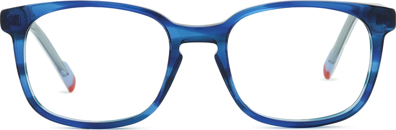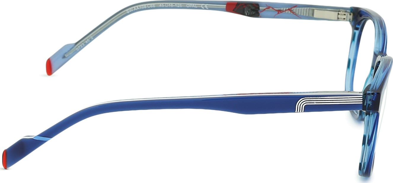 - El color azul de la montura combina perfectamente con un tono de piel claro y un cabello castaño claro, negro o rubio claro.